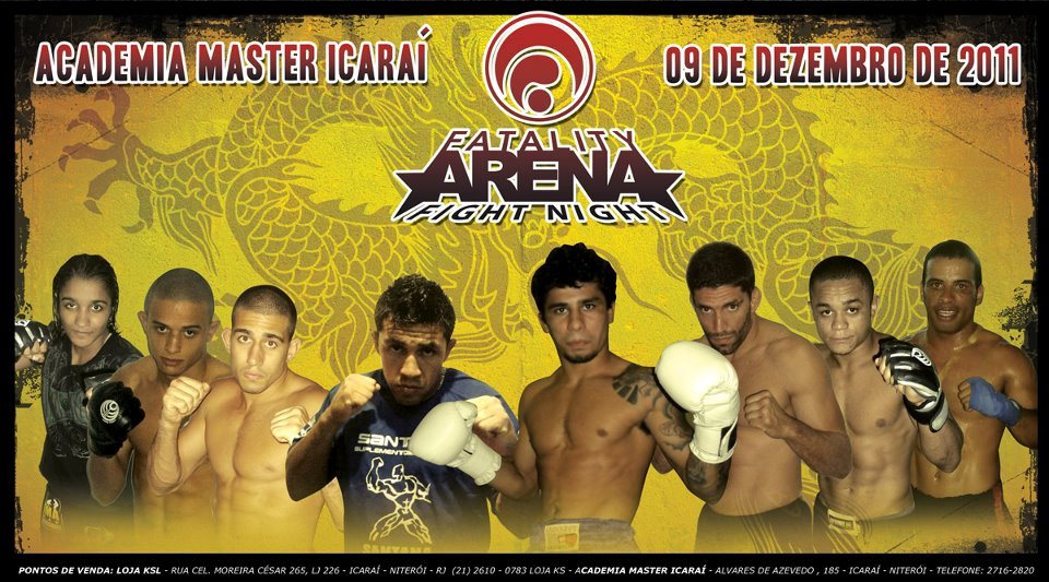 O organizador do Fatality Arena, evento de sucesso e tradicional da cidade de Niterói, Diogo Tavares já começou a aquecer as turbinas do público para a edição número quatro, foi realizada nas dependências da academia Master a primeira Copa Fatality Arena para revelar novos talentos da luta de Niterói onde foi realizado vários combates de Muay Thai entre equipes da região com lutas emocionantes e de grande rivalidade que levaram emoções fortes e torcida fervorosa ate o último minuto do evento.