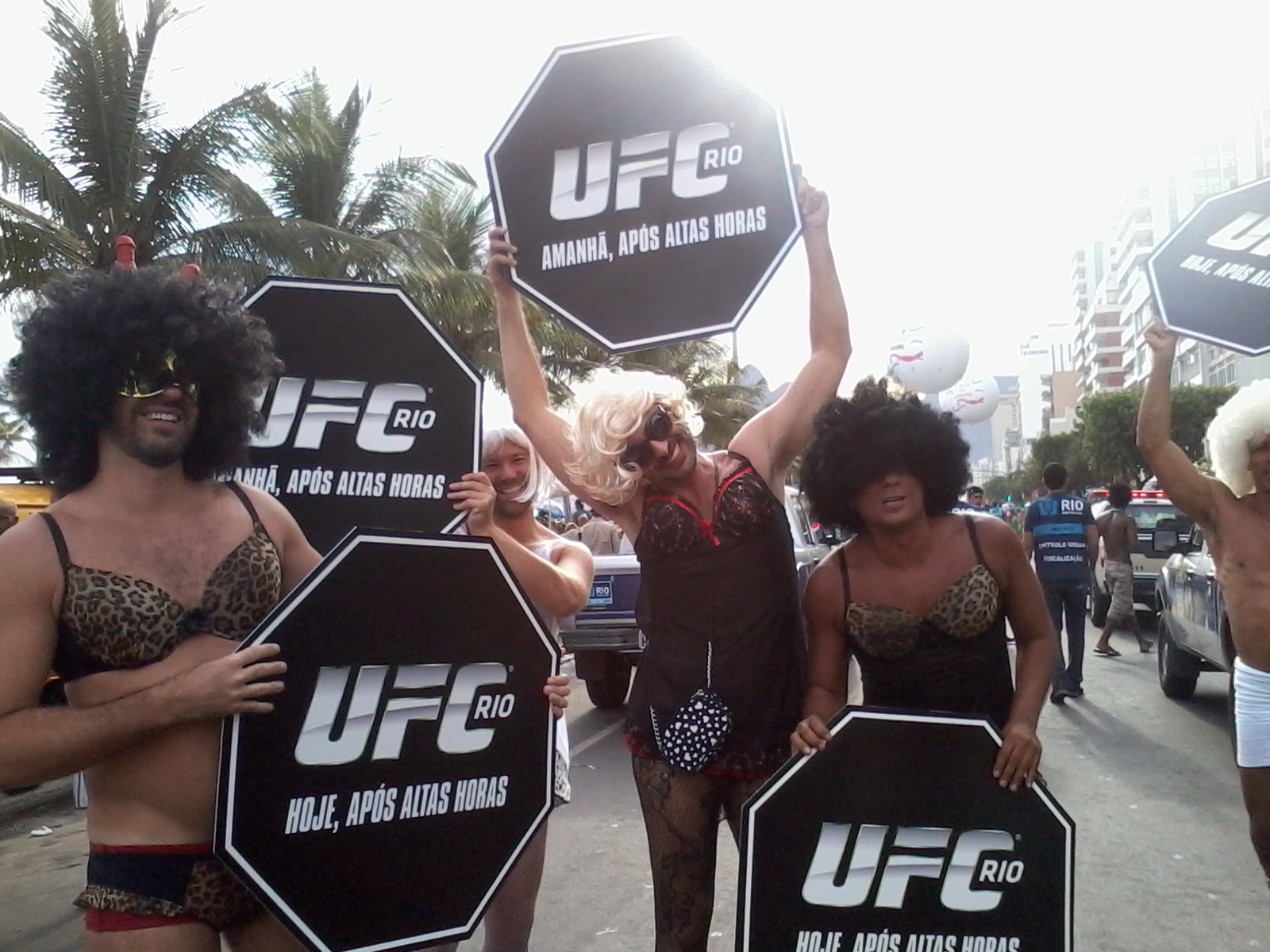 O UFC foi a fantasia da moda no carnaval de rua do Rio de Janeiro ,o carnaval tradicional de rua do rio de janeiro teve como destaque principal o UFC que após passagem pela cidade conquistou o publica carioca de vez.