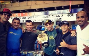 Nem um dia depois de sairem na mão pela disputa de cinturão peso galo do UFC, Renan Barão e Urijah Faber já posaram para fotos em clima de paz e amor. A imagem foi publicada no twitter do atleta gringo que não perde a compostura quando é derrotado.