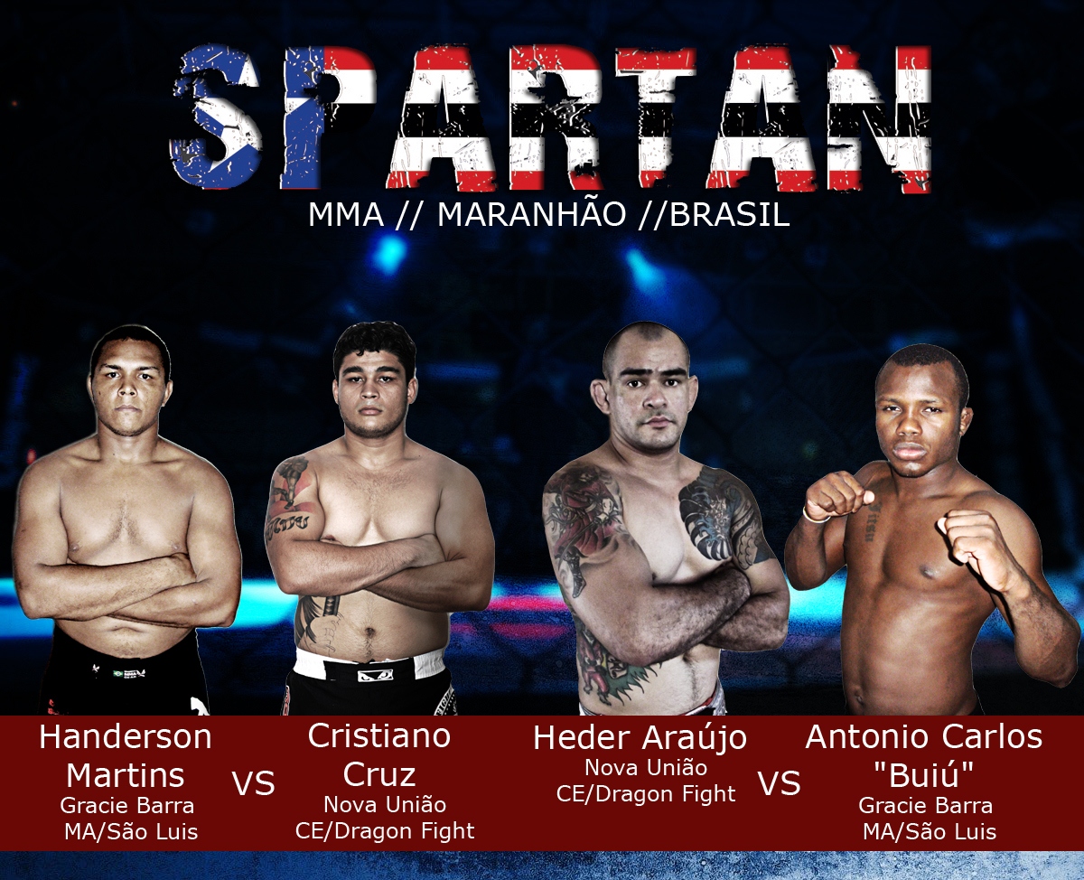 Handerson Martins que vem de vitória sobre Arymacel Chocolate no último Spartan, encara a pedreira da Nova União CE/Dragon Fight Cristiano Cruz que trás na bagagem em seu córner para São Luis o meu amigo, Mestre em Jiu-jitsu, Guilherme Santos que trás pra gente o casca grossa Heder Araújo que encara Antonio Carlos “Buiú” em mais uma luta que promete sacudir o evento.
