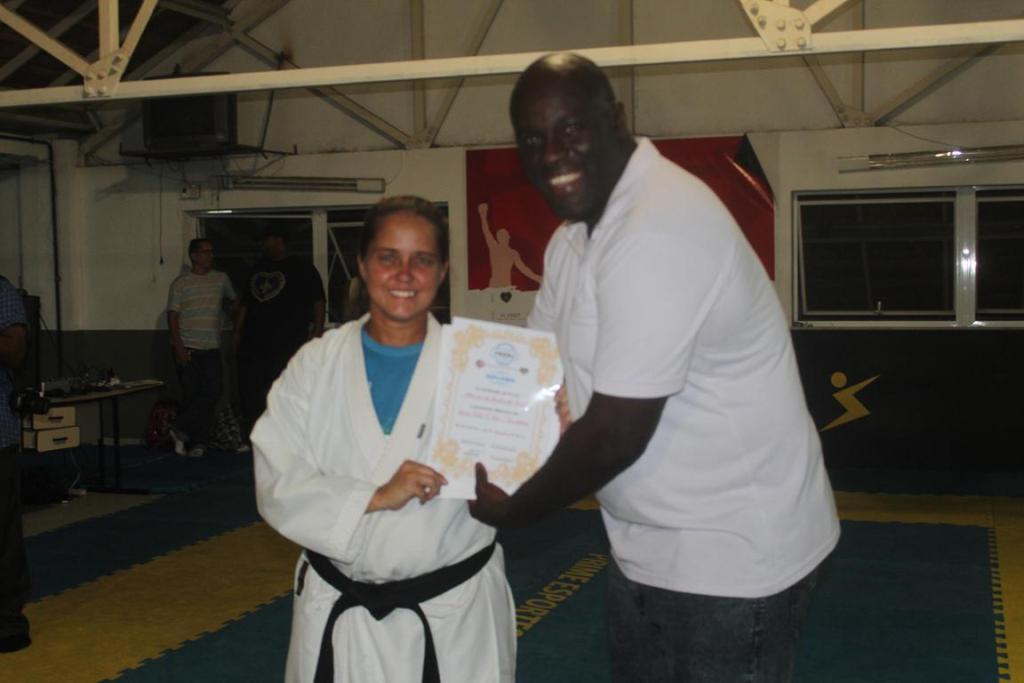 O dia também foi de premiar a professora de Karatê da comunidade de Manguinhos, Marise Covelo, com o 5° Dan na faixa, uma promoção para quem faz muito pelo esporte. Ela recebeu a premiação das mãos do presidente da Fkerj, Juarez Santos, campeão Pan-Americano no Rio, em 2007. Há 15 anos, Marise dá aulas gratuitamente em diversos locais no Rio, como em Manguinhos. Alguns alunos que começaram ainda crianças com a professora, deram depoimentos que emocionaram a todos os presentes.