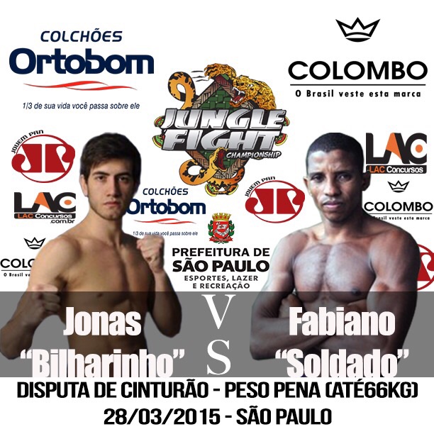 O card do Jungle Fight 76, marcado para 28 de março, em São Paulo, acaba de ganhar mais uma disputa de cinturão. Além do duelo entre Elizeu Capoeira, campeão dos meio-médios (até 77kg), e José Diaz “Suavecito”, o evento terá a disputa entre Jonas Bilharinho e Fabiano Soldado, valendo o título dos pesos-penas (até 66kg), vago após a saída de Alexandre Capitão e Renato Moicano para o UFC.