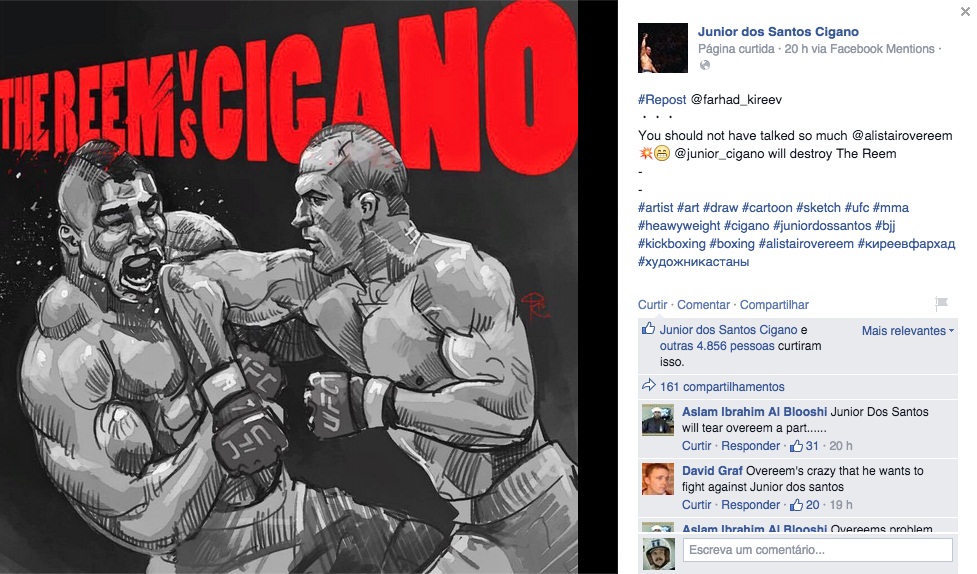 A provocação, no entanto, não passou despercebida por Overeem, que usou uma frase de Ronda Rousey para responder Cigano: “Don’t be a DNB” (Não seja uma v… inútil).