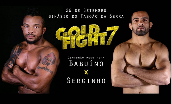 Com o confronto entre veteranos do MMA Paulista, Marcos Babuíno e Serginho Soares na luta principal, o Gold Fight 7 chega a Taboão da Serra, no dia 26 de Setembro. Além de um excelente card, os amantes de MMA poderão prestigiar o show de Gabriel O Pensador pela primeira vez na região.