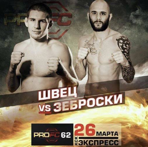 Dimitry Zebroski, 29 anos, fará a sua sétima passagem no PRO FC, onde soma 3 triunfos e 4 reveses. O atleta da Sombra Team, equipe situada em Porto Alegre/RS, vem de duas vitórias seguidas diante de Edimar Teixeira e Silas Robson de Oliveira por nocaute e decisão unânime, respectivamente.