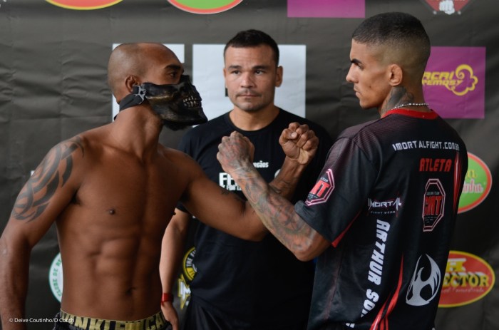 Durante a pesagem, os atletas não tiveram problemas com a balança e todos os duelos foram confirmados. Destaque para o invicto Arthur “Rato” Soares que em uma encarada tensa com o “mascarado”, Jhonatan Farias, empolgou o público presente.