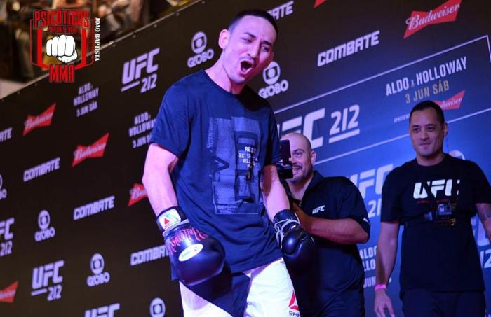 O UFC 212: ALDO x HOLLOWAY acontece no próximo sábado, dia 3 de junho, na Jeunesse Arena, no Rio de Janeiro, com José Aldo e Max Holloway lutando pela unificação do cinturão Peso-pena, no treino aberto de ontem Max Holloway foi um dos grandes destaques respondendo as provocações do publico que lotou as dependências do Barra shopping, no Rio de janeiro.