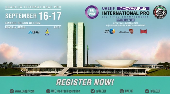 Os demais campeões do absoluto receberão viagens para competir no UAEJJF Grand Slam, no Rio de Janeiro (RJ), em novembro. O Brasília International Pro Jiu-Jitsu Championship é aberto para todas as faixas, nas categorias juvenil, adulta e master.