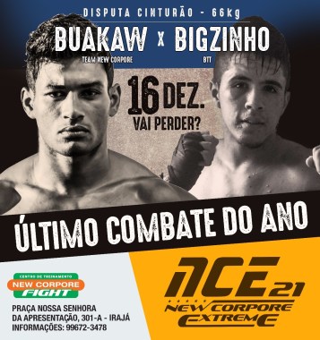 O New Corpore Extreme realizará no próximo 16 de dezembro a sua 21ª edição e o palco será a tradicional Arena NCE, em Irajá, na Zona Norte do Rio de Janeiro. O evento contará com um card repleto de boas atrações e contará com duelos de MMA profissional, além de lutas amadoras de MMA, Muay Thai e Submission.