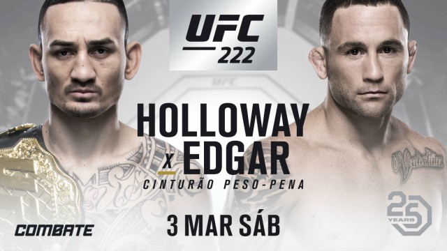 O Ultimate anunciou nesta segunda-feira a próxima defesa de cinturão do campeão peso-pena Max Holloway: será no dia 3 de março, contra Frankie Edgar, na luta principal do UFC 222, em Las Vegas.