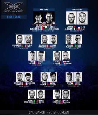 Na luta principal da estreia do Brave na Jordânia, o campeão peso pena Elias Boudegzdame fará a primeira defesa de título da história da companhia contra o polonês Jaub Kowalewicz. O argelino “Smile” defenderia seu cinturão contra Lucas “Mineiro”, mas o brasileiro passou mal antes do Brave 9 e o duelo foi cancelado.