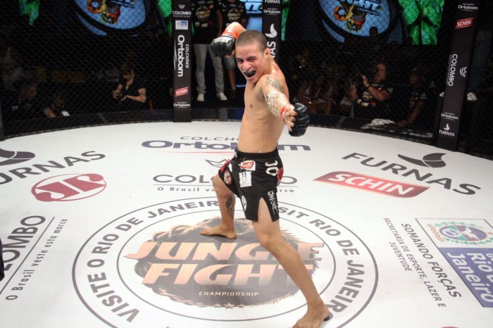 A última vitória de Felipe “Cabocão” Colares no MMA foi também a que lhe rendeu o tão sonhado cinturão peso pena do Jungle Fight. Na 92ª edição do evento, realizada em setembro do ano passado, o atleta venceu Caio Gregório por decisão unânime, no que talvez seja o maior triunfo da sua carreira até aqui. Após 3 rounds de uma luta disputada, em que qualquer erro poderia ser fatal para ambos, “Cabocão” teve o seu braço erguido pelo árbitro central e mostrou que, ao dizer em 2015 que escreveria o seu nome no evento, estava falando sério.