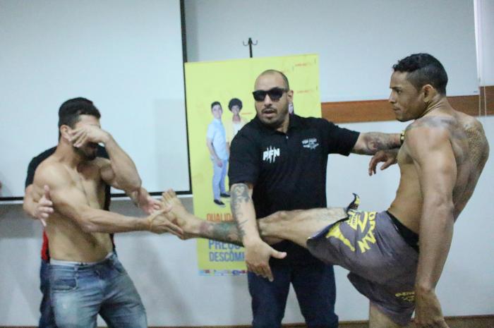 Tudo caminhava tranquilamente até a entrada dos atletas que farão o co-main event. Isaac Farias chegou atrasado para a pesagem, enquanto Jefferson Pedra tinha cumprido seu compromisso pontualmente. Na hora da encarada, porém, Isaac estava “pilhado” e partiu para cima de Jefferson. Só não houve briga porque a organização separou os atletas, exigindo profissionalismo, sob pena de exclusão da luta. “Vamos ver isso amanhã”, falou Pedra, apontando o dedo para o oponente.