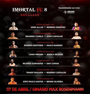 Sem lutar desde sua saída do UFC, em fevereiro de 2015, o peso médio Rodrigo “Monstro” está de volta ao MMA após se dedicar a competições de Jiu-Jitsu. Seu retorno ao cage será contra o embalado John Allan na luta principal da 8ª edição do Imortal FC, marcado para o dia 7 de abril no ginásio Max Rosenmann, em São José dos Pinhais-PR.