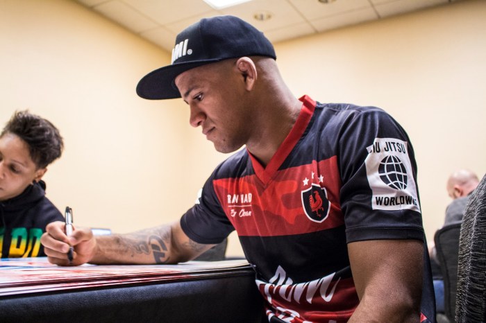 Já em Glendale, o brasileiro autografa o poster do evento (Divulgação/UFC)