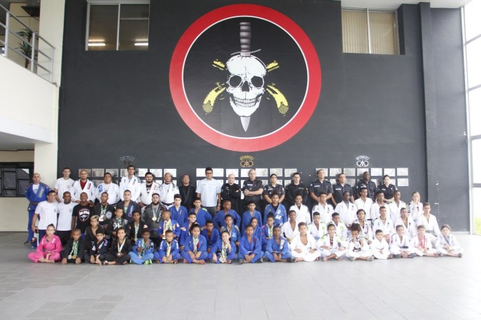 Na última semana, o Batalhão de Operações Policiais Especiais (BOPE) abriu as portas da sua sede para um último treinão antes da viagem. A ação reuniu cerca de 40 jovens que irão competir em Barueri, além de professores e autoridades policiais. Presente no evento, o lutador do UFC e faixa-preta de Jiu-Jítsu Alan Nuguette ensinou algumas posições que podem ajudar os atletas durante as lutas.