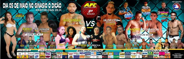 Em sua terceira edição, o evento AFC (Acará Fight Combat) será realizado no ginásio municipal de esportes o “Dicão” , dia 05 de maio a partir das 20h.
