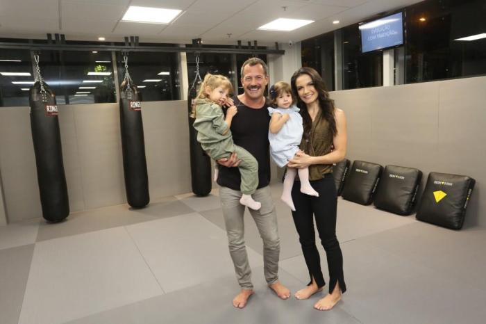 Kyra Gracie e Malvino Salvador posam com as filhas Ayra e Kyara (Divulgação / Gracie Kore)