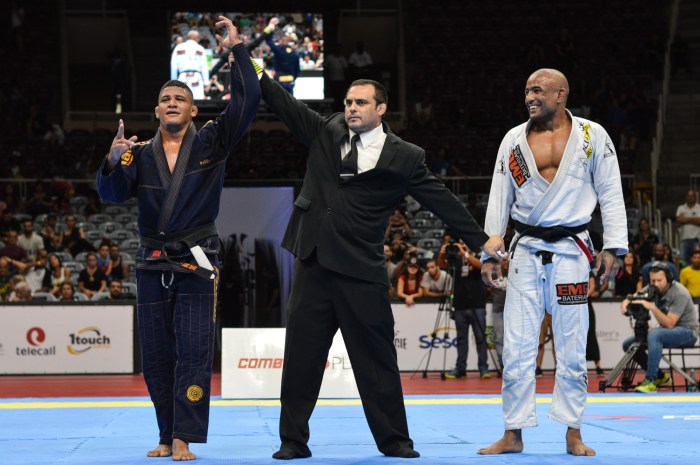 A comunidade do Cantagalo lotou a arquibancada e deixou o ginásio em clima de Maracanã. Com batuques e cânticos de incentivo, a torcida impulsionou Fernando Tererê à vitória em seu retorno ao tatame. Após início estudado nas ações, o bicampeão mundial conquistou dois pontos com uma bela queda e administrou a vantagem até o fim, para delírio dos fãs.