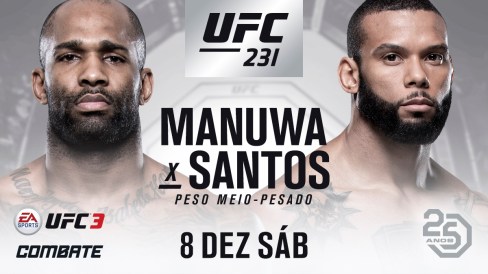 O carioca encara Jimi Manuwa no card do UFC 231, que acontecerá em 8 de dezembro na cidade de Toronto, no Canadá.