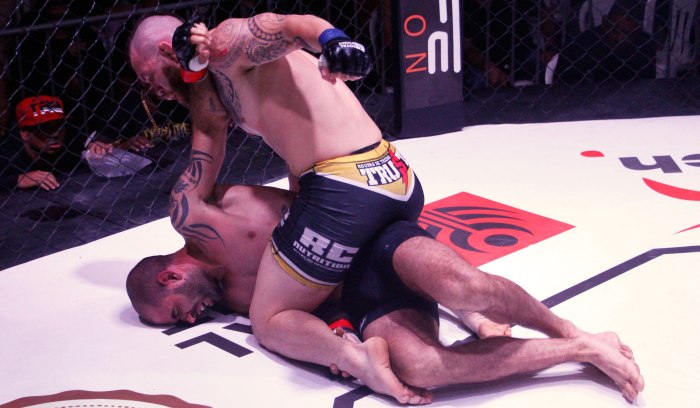 O ex-TUF Brasil Márcio Pedra, que teve uma sequência de seis vitórias interrompida recentemente por uma derrota bastante contestada na Rússia, voltou a vencer. O meio-médio se defendeu das tentativas de finalização do bom de guarda Pedro Paulo Gonçalves, pegou as costas e desferiu uma chuva de golpes até o árbitro interromper o combate, garantindo o triunfo ainda no primeiro round.