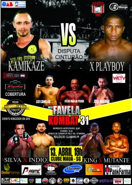 O Favela Kombat retorna para mais um grande evento no próximo dia 13 de abril, no Clube Mauá, em São Gonçalo (RJ). O evento campeão do Premio Oswaldo Paquetá, de melhor evento não televisionado de 2018, o FK preparou combates de tirar o fôlego. Na luta principal do Favela Kombat 31, teremos o um super confronto entre Felipe Playboy (RMT) x Rodrigo Kamikaze (Nova Era), pelo cinturão dos pesos-moscas (até 57kg).