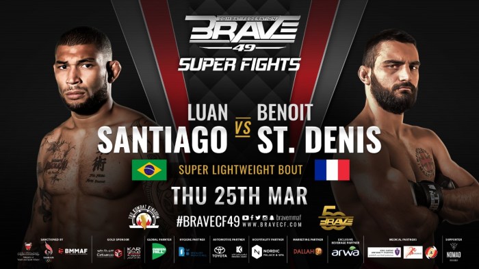 O ex-campeão dos pesos leves do BRAVE Combat Federation, organização de MMA que mais cresce no mundo, Luan “Miau” Santiago está pronto para o próximo passo em sua nova categoria de peso, os super leves, e terá pela frente o invicto Benoit St. Denis no BRAVE CF 49.