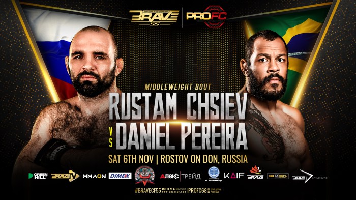 O BRAVE CF 55 acontece no dia 6 de novembro, em Rostov-On-Don, na Rússia. O evento, co-promovido com a organização local Pro FC, já teve outras duas lutas anunciadas: a semifinal do torneio pelo título mundial peso mosca entre Jose Torres e Ali Bagautinov e o duelo peso galo entre Mochamed Machaev e Kasum Kasumov.