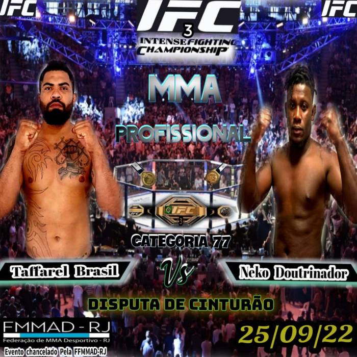 Evento IFC 3 será realizado no dia 25/09 na cidade de Niterói, no clube Fonseca Atlético Clube que já foi palco de muitas competições de jiu-jítsu e lutas nos anos 90 e 2000 , o foco do evento será no MMA amador e acontecerá a terceira etapa da seletiva da seleção carioca de MMA amador , que disputará vagas no mundial de 2023 em Abu Dhabi.