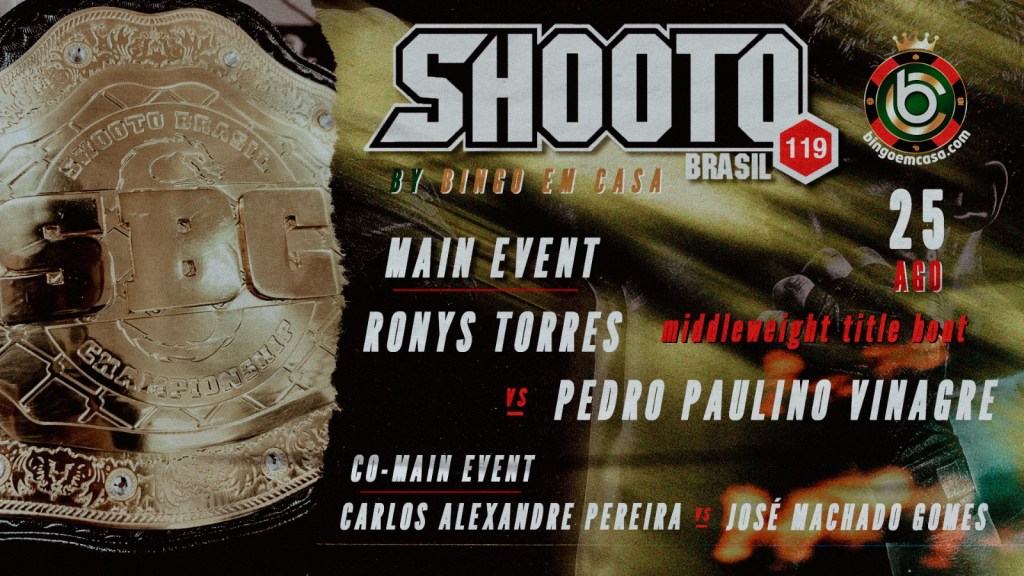 O Shooto Brasil – Bingo em Casa anunciou as duas principais lutas de sua próxima edição, de número 119, que acontece no dia 25 de agosto, na Upper Arena, no bairro do Flamengo, zona sul do Rio de Janeiro.