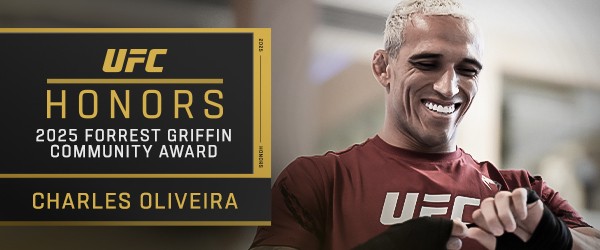 O UFC® anunciou no último sábado (26), durante a transmissão do UFC Fight Night: Machado Garry x Prates, que o ex-campeão peso-leve do UFC, Charles Oliveira, foi nomeado vencedor do Forrest Griffin Community Award de 2025. Uma homenagem ao membro do Hall da Fama do UFC, Forrest Griffin, o prêmio reconhece atletas do UFC por seu excepcional trabalho voluntário e beneficente, além do impacto significativo que seus esforços têm na comunidade.