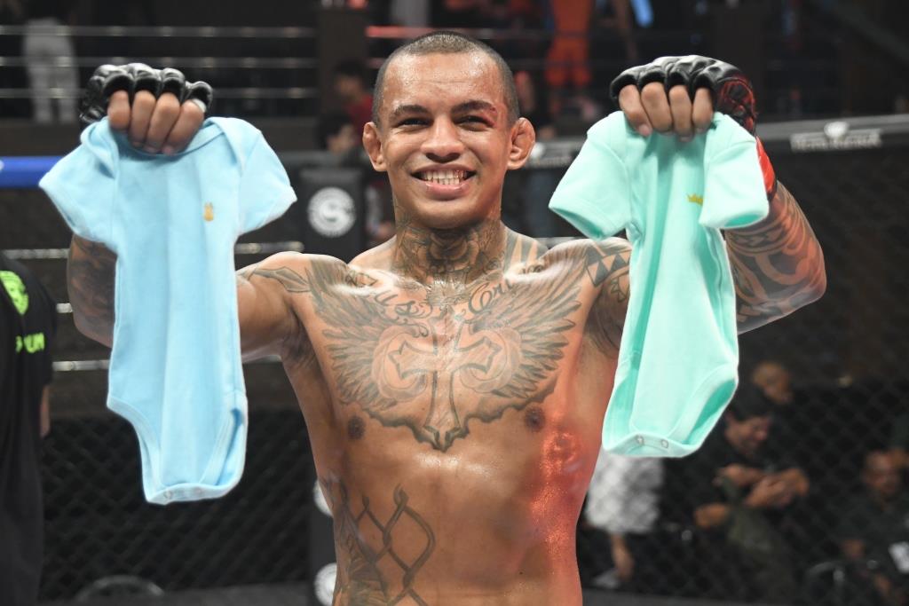 Além de comemorar a vitória, Monteiro celebra também a expectativa pela chegada de seus filhos gêmeos, anunciando um momento especial em sua carreira dentro e fora do cage.