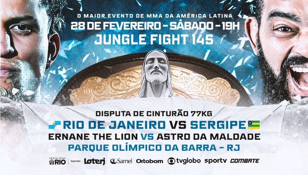 O Jungle Fight 145 será realizado no Velódromo do Parque Olímpico, na Zona Sudoeste do Rio de Janeiro, com transmissão ao vivo pelo Sportv e pelo Combate. A luta principal, um duelo Rio de Janeiro x Sergipe, vale o cinturão dos meio-médios, que está vago. O carioca Ernane Pimenta enfrenta o sergipano ex-campeão Anderson “Astro da Maldade”, que tenta retomar o título.