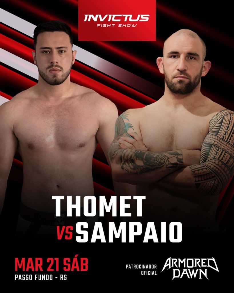 Com uma programação que mistura experiência e novos nomes do esporte, o Invictus Fight Show estreia apostando em um card movimentado e na expectativa em torno da disputa de cinturão entre Rickson Thomet e Roger Sampaio, confronto que promete definir o primeiro campeão da organização e marcar o início da história do evento no MMA gaúcho.
